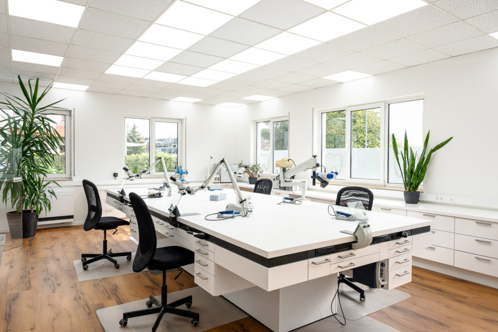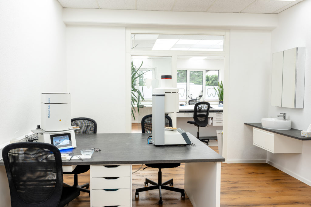 Erhalte eine 360°-Sicht in unser Labor und erlebe, wie wir mit modernster Technik und handwerklicher Präzision hochwertigen Zahnersatz fertigen. Wir verbinden Innovation mit Erfahrung – für Lösungen, die funktional, langlebig und ästhetisch überzeugen.